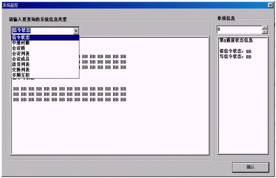 通道監(jiān)控:在監(jiān)控欄中顯示0~89個通道,每個通道對應一個用戶,當用戶撥接入號入會時,用戶自動占用一個通道,用光標移至該通道時它自動地打開提示欄,里面顯示該用戶的主叫號碼、級別。