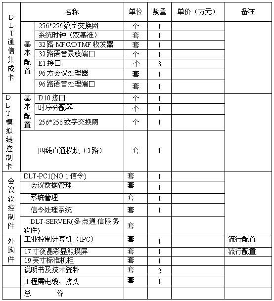 ( 90 方)快速指揮調度系統(tǒng)配置清單