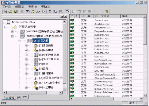 ·采用Windows Explorer風(fēng)格的樹(shù)形節(jié)點(diǎn)編輯呼叫流程,同時(shí)可通過(guò)查看屬性查看每個(gè)業(yè)務(wù)節(jié)點(diǎn)上下級(jí)之間的關(guān)系。使用戶對(duì)IVR的整個(gè)呼叫流程,以及各個(gè)節(jié)點(diǎn)之間的關(guān)系一目了然。
