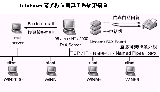 InfoFaxer韶光數(shù)位傳真王系統(tǒng)架構圖