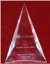 2010年2月,寶利通全球代理商大會在美國圣地亞哥舉辦,直真視通榮獲“Polycom 2009 亞太區(qū)最大集成商”獎牌。