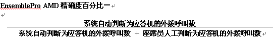 AMD精確度是如何計(jì)算的 ?這一點(diǎn)非常重要。EnsemblePro 的AMD精確度采用的是較為保守的算法-僅計(jì)算那些被應(yīng)答的電話(huà)。下面的等式是EnsemblePro對(duì)AMD精確度的定義: