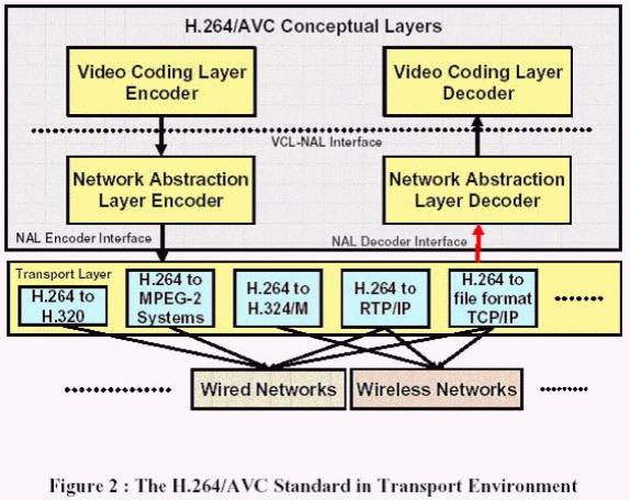 根據(jù)圖2,H.264/ AVC在不同的概念層上區(qū)分開(kāi)來(lái),視頻編碼層(VCL)和網(wǎng)絡(luò)抽象層(NAL)。VCL和NAL都是H.264/ AVC標(biāo)準(zhǔn)的一部份。VCL對(duì)視頻編碼信號(hào)進(jìn)行了有效的說(shuō)明。H.264/AVC的NAL定義了視頻編碼和外面世界之間的接口。它通過(guò)NAL單元來(lái)支持大部分基于包的網(wǎng)絡(luò)。在NAL解碼接口,它假設(shè)NAL單元已經(jīng)通過(guò)解碼命令被發(fā)送,數(shù)據(jù)包要么被正確接受,要么丟失,如果有效載荷里包括了錯(cuò)誤的數(shù)據(jù)流,NAL單元的頭就會(huì)產(chǎn)生一個(gè)錯(cuò)誤的標(biāo)記。由于標(biāo)記可以用于不同的目的,因此它并不作為標(biāo)準(zhǔn)的一部分。然而,它提供一個(gè)在整個(gè)網(wǎng)絡(luò)里提供錯(cuò)誤指示信號(hào)的方法。此外,接口規(guī)范要求標(biāo)準(zhǔn)化主體有責(zé)任對(duì)不同傳送協(xié)議進(jìn)行描述。NAL單元在不同傳輸系統(tǒng)的精確傳輸和加密,例如H.320,MPEG-2系統(tǒng)和RTP/IP,也同樣在h.264/AVC標(biāo)準(zhǔn)化的范疇以外。在標(biāo)準(zhǔn)里面正式定義了NAL解碼接口,然而,VCL和NAL之間的接口只是概念上的定義,主要是幫助描述和分開(kāi)VCL和NAL的任務(wù)。