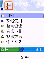 在確認(rèn)你的手機(jī)可以支持富年科技的專用移動(dòng)流媒體播放軟件后,你就可以到掌景無(wú)限的網(wǎng)站上下載對(duì)應(yīng)的播放軟件。這款播放軟件的名稱是FondoPlayer,其版本號(hào)和界面設(shè)計(jì)因所支持的手機(jī)品牌和型號(hào)的不同而略有區(qū)別,但是功能則大同小異。下面我們就以諾基亞的6600為例演示一下GPRS手機(jī)看電視的具體方法吧。
