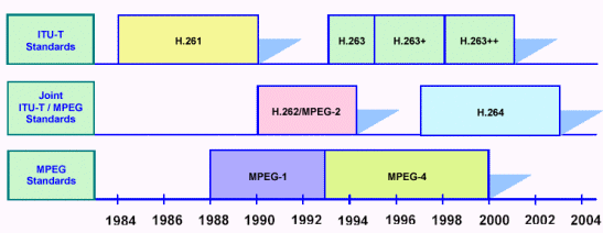 H.264在1997年ITU的視頻編碼專家組(Video Coding Experts Group)提出時被稱為H.26L,在ITU與ISO合作研究后被稱為MPEG4 Part10(MPEG4 AVC)或H.264(JVT)。