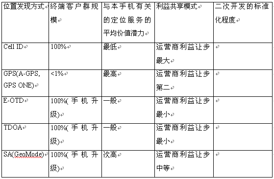 和其他增值服務(wù)一樣,定位服務(wù)的成功在于除了簡單應(yīng)用外,還有不斷推陳出新的新服務(wù)的支撐,而對SP和CP應(yīng)用開發(fā)最直接的吸引力依次是:終端客戶群規(guī)模