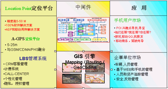 在中國,現(xiàn)階段的主流定位技術(shù)是Cell ID和GPS,但是,GeoMode兼顧了二者的優(yōu)點,費用低(平臺和終端)和精度高(和GPS屬于一個檔次),可以迅速發(fā)展客戶規(guī)模。是最適合中國特點的定位實現(xiàn)方式。
