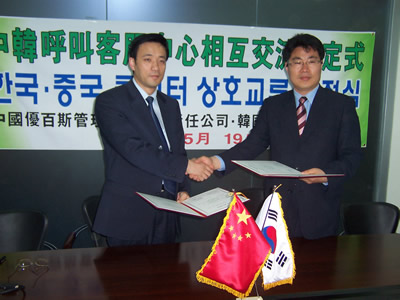 5月19日,在中韓客服中心相互交流協(xié)定儀式上,北京優(yōu)百斯管理咨詢有限責任公司與韓國光州女子大學簽訂了戰(zhàn)略合作協(xié)議,同時也標志著雙方會更加緊密的合作,為促進中韓客戶服務中心的交流和發(fā)展起到積極的推動作用。
