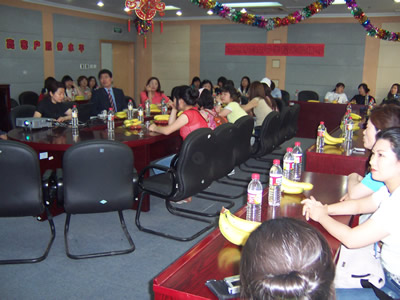 下午,訪問團又參觀了國內大型電信運營商之一的中國網通北京分公司客戶服務中心,該客戶服務中心擁有1100多個座席,近2000多員工?蛻舴⻊罩行母笨偨浝碛谧鹋烤涂蛻舴⻊罩行牡陌l(fā)展歷程、客戶服務中心內部的文化建設、員工管理、團隊建設等方面進行了介紹。參觀過程中韓國訪問團成員還就其關心的員工任職要求、崗位設定、員工培養(yǎng)等問題與于尊女士進行了交流,會場討論氣氛異常熱烈。