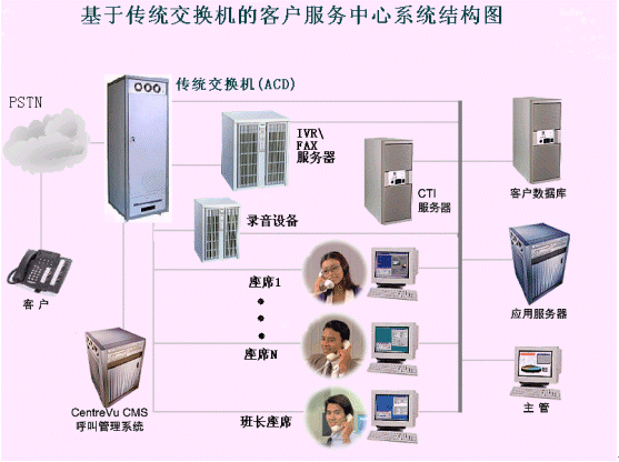 但是由于傳統(tǒng)交換機(jī)在語音資源、傳真資源等呼叫中心基本信息資源處理能力方面的匱乏,必須通過語音板卡和PC機(jī)的方式解決,有時(shí)因?yàn)橄到y(tǒng)容量大,甚至需要多臺(tái)共同服務(wù),其IVR(交互式語音應(yīng)答)和FAX、CTI服務(wù)器卻只能達(dá)到PC機(jī)標(biāo)準(zhǔn)。所以開發(fā)出的系統(tǒng)雖然前置交換為電信級(jí)的標(biāo)標(biāo)準(zhǔn),但是其整體性能、穩(wěn)定性仍受PC插卡方式的影響。另外,由于交換機(jī)和IVR、FAX、CTI等之間的相互連接會(huì)受其密合程度和其他外來因素影響,會(huì)造成一些不可預(yù)知的系統(tǒng)故障。不僅交換機(jī)+CTI服務(wù)器+IVR服務(wù)器(語音板卡+PC機(jī))+傳真服務(wù)器(傳真卡+PC機(jī))+錄音模塊設(shè)備(監(jiān)控錄音卡+PC機(jī))的建設(shè)成本非常高,并且編程開發(fā)較復(fù)雜。