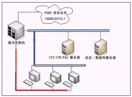 Logging)等幾個(gè)部分,中繼線接入采用30B+D、2B+D并存方式,數(shù)量達(dá)到30多條,IVR為8路,,座席數(shù)量為16個(gè)。