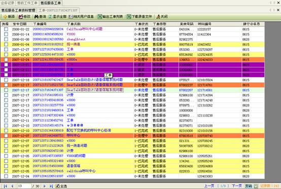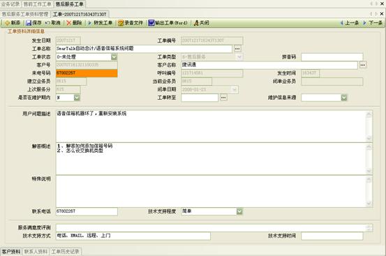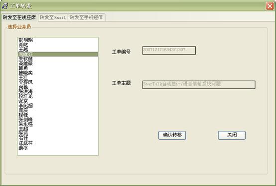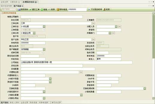 3) 工作流閉環(huán)、客戶通話歷史,客戶聯(lián)系歷史,工單流轉(zhuǎn):工作流系統(tǒng)是通過工單實(shí)現(xiàn)各工作流環(huán)節(jié)的聯(lián)系以及工作流的定義管理,工作流狀態(tài)查詢、更改的。操作員可根據(jù)用戶的不同業(yè)務(wù)請求,建立相應(yīng)的工單記錄,并對該事后處理過程進(jìn)行跟蹤;也可對要處理的事務(wù)形成工單轉(zhuǎn)給相應(yīng)的操作員,并跟蹤該工單的處理過程;可定期提示操作員處理要過期的工單,以提高服務(wù)質(zhì)量;每次處理過程都會有詳細(xì)的記錄,以便統(tǒng)計(jì)查詢 。如圖8、9、10: