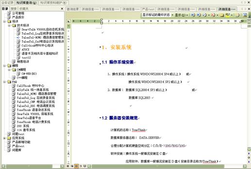 業(yè)務(wù)知識庫系統(tǒng)包括大量的信息,它可以幫助坐席人員精確、及時地得到相關(guān)知識的詳細(xì)信息。坐席人員可以利用業(yè)務(wù)知識庫系統(tǒng)提供的多種查詢手段,進(jìn)行各種信息的查詢。管理人員還可以通過知識庫訪問量統(tǒng)計(jì)來了解座席員訪問知識庫的情況,并且可以通過知識庫資料維護(hù)來靈活定制知識庫的內(nèi)容。