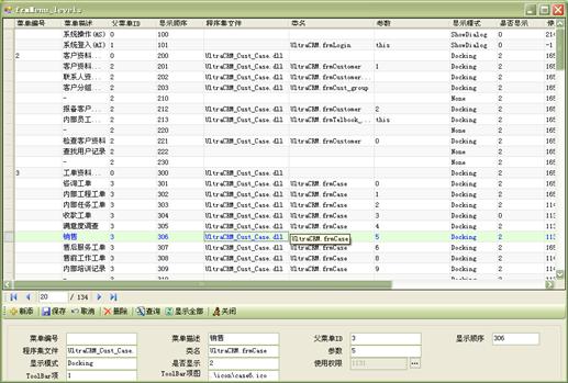 在CRM系統(tǒng)中還有一些系統(tǒng)的擴(kuò)展功能,包括動態(tài)菜單,自定義用戶資料、工單資料、產(chǎn)品信息,網(wǎng)頁嵌入,EXE嵌入,這些擴(kuò)展功能方便用戶根據(jù)自己的需要個性化的設(shè)定CRM系統(tǒng),例如我們可以通過菜單管理來定制需要顯示的菜單內(nèi)容,菜單名稱以及可以根據(jù)不同的角色設(shè)置某個菜單項(xiàng)是否可見,如圖26所示