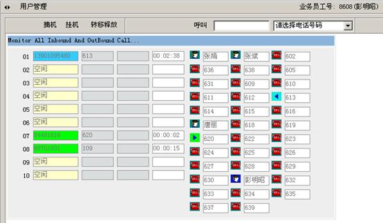 1)系統(tǒng)與CTI服務(wù)器配合,輕松實(shí)現(xiàn)諸如:實(shí)時監(jiān)控系統(tǒng)的呼叫隊(duì)列、登陸坐席的狀態(tài);并且通過屏幕控制電話的接答、掛機(jī)、轉(zhuǎn)接,以及建立會議等操作。如圖2: