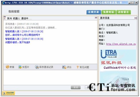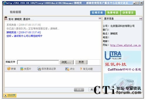 訪客可以通過點(diǎn)擊網(wǎng)站的 “客服”鏈接自動(dòng)選擇交談對象或點(diǎn)擊“客服人員”進(jìn)行交談。
