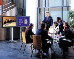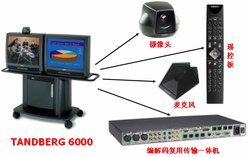 會議系統(tǒng)的組成非常簡單,每個會場安放一臺視頻會議終端,終端接上電視機作為回顯設備、接上網(wǎng)絡作為傳輸媒介就可以了。一臺終端通常有一臺核心編解碼器、一個攝像頭,一個全向麥克風以及一個遙控器。核心編解碼將攝像頭和麥克風輸入的圖像及聲音編碼通過網(wǎng)絡傳走,同時將網(wǎng)絡傳來的數(shù)據(jù)解碼后將圖像和聲音還原到電視機和音響上,即實現(xiàn)了與遠端的實時交互。終端通過呼叫IP地址或ISDN號碼進行連接(專線無需撥號)。但在有三點會場就必須采用MCU(視頻會議多點控制單元)進行管理。