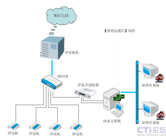 【瑞明達(dá)通信】是國(guó)內(nèi)較早從事專(zhuān)業(yè)計(jì)算機(jī)電話語(yǔ)音系統(tǒng)(CTI)產(chǎn)品的開(kāi)發(fā)商, 在客戶(hù)交互式解決方案行業(yè)中有十多年的從業(yè)經(jīng)驗(yàn),具備雄厚的語(yǔ)音產(chǎn)品開(kāi)發(fā)能力。最近幾年,基于 IP 的下一代通信,正在以前所未有的速度改變著全世界的通信架構(gòu)和商業(yè)格局!救鹈鬟_(dá)通信】作為錄音技術(shù)的領(lǐng)先廠商,就已經(jīng)具有前瞻性的潛心致力于基于IP通訊線路的多媒體記錄解決方案的研發(fā),RMD_VoIPlog錄音系統(tǒng)是由【瑞明達(dá)通信】自行開(kāi)發(fā)研制的新一代IP錄音系統(tǒng)。該系統(tǒng)在記錄VoIP語(yǔ)音的同時(shí),所需的語(yǔ)音資源通過(guò)軟件方式或硬件平臺(tái)直接由網(wǎng)絡(luò)中的RTP等數(shù)據(jù)流獲取,無(wú)須和座席分機(jī)或中繼線進(jìn)行并接,因此是一種軟件/硬件分別實(shí)現(xiàn)的錄音系統(tǒng),是真正的基于IP 的錄音解決方案。RMD_VoIPlog錄音系統(tǒng),是以數(shù)字記錄、數(shù)據(jù)庫(kù)查詢(xún)、光盤(pán)存儲(chǔ)等先進(jìn)技術(shù)為手段,為通話語(yǔ)音的錄制、管理提供了一種先進(jìn)、科學(xué)而又行之有效的方法。二、RMD_VoIPlog錄音系統(tǒng)運(yùn)行環(huán)境