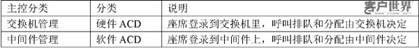 觀察一下國內(nèi)的呼叫中心中間件的ACD應用現(xiàn)狀,我們先做一個分類。