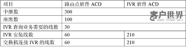 3、硬件成本差別很大。這在大型呼叫中心中表現(xiàn)尤為明顯,如果用IVR軟件ACD方式,IVR數(shù)量必須大于中繼數(shù)-座席數(shù)。