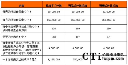 Hi-Dialer為不少呼叫中心企業(yè)帶來的前所未有的收益。我們可以進(jìn)行一個(gè)簡單的實(shí)景測(cè)算,目前國內(nèi)典型的擁有預(yù)測(cè)式外呼的呼叫中心都有單純的呼入坐席,假設(shè)呼入坐席500席,預(yù)測(cè)式呼出坐席1000席,呼入和呼出坐席的呼叫中心系統(tǒng)分別獨(dú)立,如果是業(yè)務(wù)量飽和的狀態(tài)下,全部坐席是可以用的,但是在業(yè)務(wù)量不飽和的狀態(tài)下,想讓這1000坐席接聽呼入電話,卻辦不到。這就形成了一個(gè)巨大的漩渦,將企業(yè)的軟硬件成本、場(chǎng)地租金和人力資源無情的吞噬掉了。新的勞動(dòng)法又規(guī)定企業(yè)不得隨意裁人,那么這時(shí)候企業(yè)就會(huì)非常頭疼。這是一個(gè)典型的重復(fù)建設(shè)項(xiàng)目。