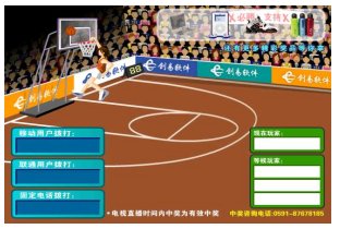 挑戰(zhàn)籃球游戲是一款全新的基于電視/網(wǎng)絡(luò)平臺(tái)的體育休閑娛樂(lè)游戲,用戶(hù)可以借助短信等手段參與游戲,在游戲中不但可以贏(yíng)取游戲積分,通過(guò)積分兌換獎(jiǎng)品,還可以身臨其境地感受賽場(chǎng)上投籃的快感。現(xiàn)在拿起你的手機(jī)或電話(huà),選擇一下角度吧!