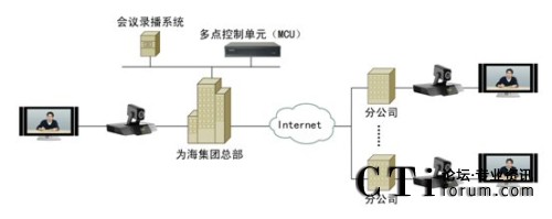 科達(dá)視頻會(huì)議解決方案就部署而言非常簡(jiǎn)單:為海集團(tuán)深圳總部的機(jī)房架設(shè)一臺(tái)多點(diǎn)控制單元(MCU),總部會(huì)議室、各分公司的會(huì)議室則各部署一套視頻會(huì)議終端。總部帶寬為10/100M,各地分公司均通過(guò)普通ADSL接入。系統(tǒng)拓?fù)鋱D如下: