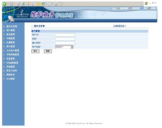 如果說(shuō)節(jié)省了幾臺(tái)服務(wù)器和CTI中間軟件的開(kāi)支對(duì)于用戶(hù)而言?xún)H僅是一個(gè)直觀的體驗(yàn),那么RT-CCP1000的維護(hù)和管理將對(duì)用戶(hù)產(chǎn)生長(zhǎng)久的影響,在維護(hù)和管理上仍然堅(jiān)持著一體化核心理念的RT-CCP1000平臺(tái),將用戶(hù)從多個(gè)廠家的設(shè)備互聯(lián)和維護(hù)中(程控交換機(jī)/CTI服務(wù)器/IVR服務(wù)器/錄音服務(wù)器)徹底的解放出來(lái)。RT-CCP1000基于WEB方式的全中文操作維護(hù)界面始終走在業(yè)界的最前沿。