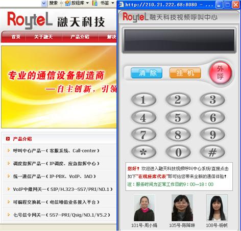 融天科技視頻呼叫中心都采用了非常先進(jìn)的Web-Call和視頻通信技術(shù),將軟電話控件嵌入到企業(yè)網(wǎng)站上,而對于企業(yè)來說一切都變得非常簡單,無論何時何地,客戶在訪問企業(yè)網(wǎng)站時,可以通過傻瓜式的WEB界面點(diǎn)擊在線視頻座席,只要客戶PC裝有麥克風(fēng)和攝像頭即可以網(wǎng)頁方式進(jìn)行面對面的進(jìn)行視頻和語音交流,同時也能向用戶播放相關(guān)的產(chǎn)品資訊,讓您抓住即將流失準(zhǔn)客戶,直接為您的企業(yè)創(chuàng)造價值。