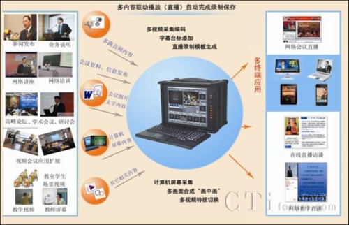 CTI論壇(ctiforum)6月8日消息(記者 潘婷婷):隨著視訊技術的不斷發(fā)展,市場上出現(xiàn)了越來越多的應用終端,除了傳統(tǒng)的PC外,IPAD、IPHO等新興移動終端紛紛進入市場,多終端應用的網(wǎng)絡視音頻系統(tǒng)越來越被用戶所關注。傳統(tǒng)的直播錄播系統(tǒng)在很大的程度上已不能滿足部分用戶的需求,清晰、流暢、支持多終端應用的網(wǎng)絡直播錄播系統(tǒng)已經(jīng)成為網(wǎng)絡視頻應用的亮點和優(yōu)勢。北京經(jīng)緯中天信息技術有限公司作為國內(nèi)一流的專業(yè)網(wǎng)絡視音頻應用平臺開發(fā)商和服務商,不僅僅專注于行業(yè)技術的研究,同時更加關注市場的需求,實時地推出了“支持多終端應用的富媒體直播錄播系統(tǒng)”,可很好地滿足用戶多種網(wǎng)絡視頻應用。