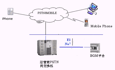彩話(BGM-- Background Music)業(yè)務(wù),就是在雙方通話過程中播放的由用戶事先點播的背景音樂。這項業(yè)務(wù)更多的作為一種精神消費時尚,電信運營商可作為一種時尚推出,可以定位為帶背景音樂的電話業(yè)務(wù)。BGM與CRBT(彩鈴業(yè)務(wù))技術(shù)原理基本相同,具體來說,就是申請業(yè)務(wù)的用戶可以通過多種方式設(shè)置或管理在與他人通話時的背景音樂,這項業(yè)務(wù)可以兩種方式來實現(xiàn),當然,無論何種模式都不影響交換機的原有通話業(yè)務(wù)。