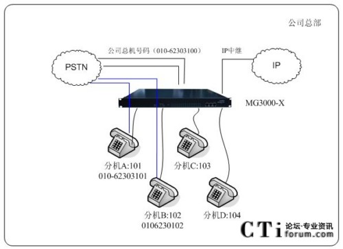 MG3000-X100替代傳統(tǒng)PBX交換機應用方案 2009-09-23
