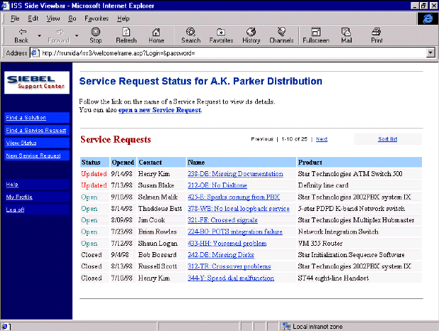 圖五. Siebel eService展示個(gè)性化的,動(dòng)態(tài)的服務(wù)信息