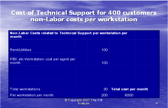 最后,我們可以如同下面圖表10所示,把所有的信息放在一起。每個(gè)客戶(hù)的技術(shù)支持的實(shí)際成本包括間接人工成本和工作場(chǎng)地成本,這是服務(wù)一個(gè)客戶(hù)所花費(fèi)成本的正確的反映。