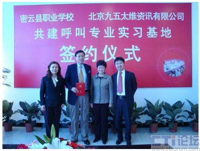 CTI論壇(ctiforum)04月30日消息: 近日,密云縣職業(yè)學校與北京九五太維資訊有限公司校企合作共建呼叫專業(yè)實習基地簽約儀式在密云縣職業(yè)學校隆重舉行,市教委職成處處長李敏,縣委常委副縣長王春林、副縣長錢福生、副縣長徐芳出席簽約儀式并發(fā)表了講話。密云縣教委主任李鐘勤,北京九五太維資訊有限公司董事長汪遠,首席執(zhí)行官李寶民及其培訓師團隊,密云縣經(jīng)濟開發(fā)區(qū)總公司及部分入?yún)^(qū)呼叫企業(yè)出席了簽約儀式。在簽約儀式上,密云縣教委主任李鐘勤向九五太維公司首席執(zhí)行官李寶民博士頒發(fā)了聘書,聘請李寶民博士為密云縣職業(yè)學校名譽校長。