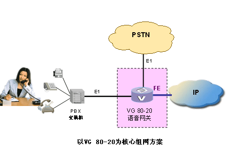 VG 80-20提供2個E1語音接口,用于接連接程控電話交換機的E1中繼線,通過以太口連接到IP網(wǎng)中。VG 80-20可以作為縱向網(wǎng)核心,企業(yè)總部或大型分支的核心語音網(wǎng)關(guān)設(shè)備,輕松實現(xiàn)長途旁路IP電話功能。在具有豐富的IP電話特性的同時,將回波抵消、靜音壓縮、舒適噪音、防抖動等措施,與安全、QoS等網(wǎng)絡(luò)特性結(jié)合,確保語音和傳真數(shù)據(jù)在IP網(wǎng)絡(luò)上的傳輸質(zhì)量。