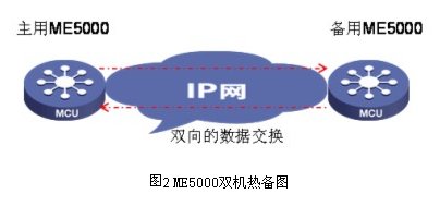 - ME5000采用雙機(jī)熱備技術(shù),2臺ME5000通過IP網(wǎng)絡(luò)(局域網(wǎng)、廣域網(wǎng))在線熱備,出現(xiàn)意外情況時(shí),備份ME5000將及時(shí)接替原ME5000將會(huì)議繼續(xù)召開,不需要終端進(jìn)行任何操作,保障會(huì)議延續(xù)。