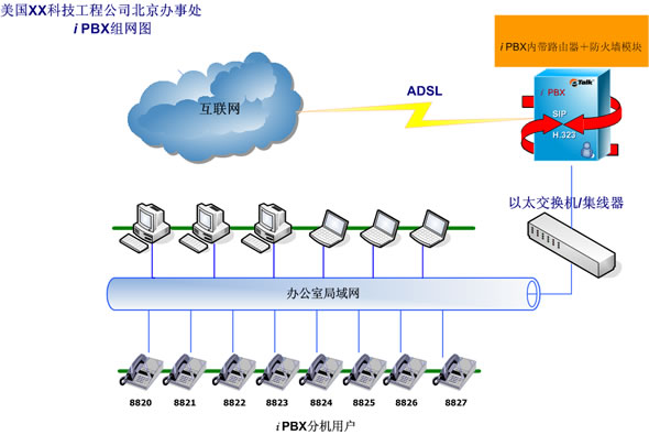 eTalk iPBX典型案例三:美國(guó)XX科技工程公司北京辦事處