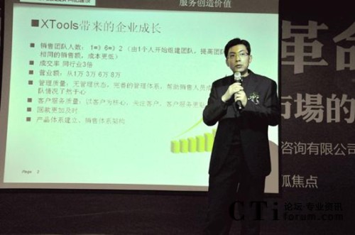 另外,濟(jì)南創(chuàng)弈工場總經(jīng)理趙小峰任曉峰與現(xiàn)場嘉賓分享了自身創(chuàng)業(yè)與成長過程。創(chuàng)弈工場科技有限公司成立于2008年,是由山東大學(xué)創(chuàng)業(yè)團(tuán)隊發(fā)展而來的、以先進(jìn)電子商務(wù)架構(gòu)和企業(yè)CI設(shè)計專家為目標(biāo)的公司。趙總?cè)慰偸且晃?0后互聯(lián)網(wǎng)新銳,他表示:“公司運用XTools具有管理思想的系統(tǒng)幫助管理這支年輕的隊伍,使其健康發(fā)展,對于創(chuàng)業(yè)者來說,銷售體系的管理是至關(guān)重要的,這樣我們少走了彎路。”