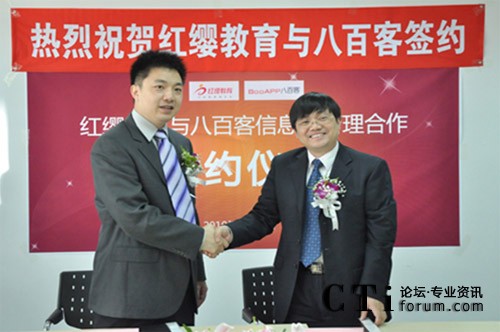 CTI論壇(ctiforum)5月13日消息(記者 潘婷婷):5月11日,八百客(北京)軟件技術有限公司與北京紅纓時光科技發(fā)展有限公司正式簽訂“信息化管理合作”協(xié)議。以幼教著稱的紅纓教育,將采用中國知名管理軟件800CRM,使企業(yè)管理實現(xiàn)質(zhì)的飛躍。