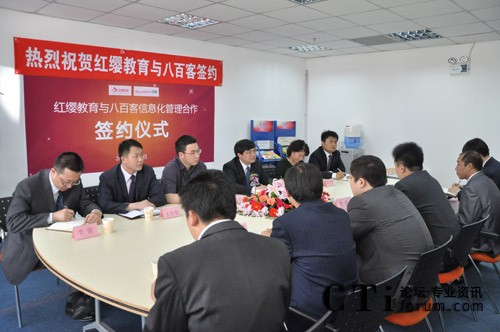 簽約當日,八百客與紅纓教育在北京中關村軟件園舉辦隆重的“信息化管理啟動會”。紅纓總經(jīng)理王紅兵、八百客CEO李智等參加此次項目的啟動會。