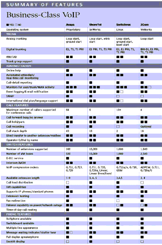 附:第三方測評(píng)。美國著名計(jì)算機(jī)雜志《PC Magazine》在2005年第11期發(fā)表了其對(duì)當(dāng)前流行的企業(yè)級(jí)VoIP電話系統(tǒng)第三方測評(píng)結(jié)果,以下是原文掃描摘錄: