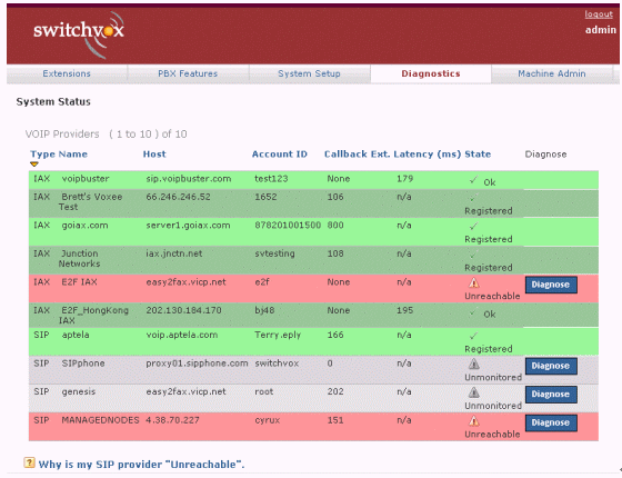 圖2中綠色表示正常,紅色表示出現(xiàn)問題,白色表示從沒有接通過。如果你按診斷(Diagnose),系統(tǒng)便會(huì)通過自動(dòng)測(cè)試,告訴你問題出自那一段落。如果需要對(duì)每一個(gè)的詳細(xì)解析,可以按底部Why這個(gè)標(biāo)題,找尋答案。類似的終端、話機(jī)等配置、硬件診斷等,也有非常明撩的界面與解決問題的辦法。