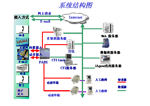 滿足呼叫中心多渠道接入的需求,使Internet呼叫中心成為現(xiàn)實。將網上ip電話請求納入傳統(tǒng)語音呼叫統(tǒng)一管理,無縫集成Email,傳真功能,實現(xiàn)網頁的互推瀏覽,文字交談,ip電話,網上資料發(fā)送等功能。