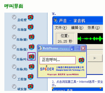 WCS3050主要提供Web點擊呼叫功能,當(dāng)用戶在瀏覽企業(yè)網(wǎng)站或網(wǎng)絡(luò)廣告的時候,通過點擊該企業(yè)的聯(lián)系電話,甚至企業(yè)標(biāo)識等其它標(biāo)志,直接下載安裝特定的控件后就可以通過電腦打電話到該企業(yè)服務(wù)中心,大大方便了用戶對企業(yè)及其產(chǎn)品的進一步了解,更加促進了企業(yè)的市場銷售和宣傳。