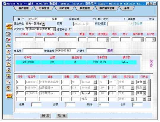 客戶根據(jù)麥考林提供的產(chǎn)品目錄告訴座席代表所需的產(chǎn)品和數(shù)量,并說(shuō)明送貨方式、付款方式等信息,CRM軟件會(huì)自動(dòng)計(jì)算客戶的消費(fèi)金額,如果是老客戶或增在進(jìn)行促銷活動(dòng),軟件會(huì)自動(dòng)計(jì)算相應(yīng)的折扣。如果某種產(chǎn)品缺貨,系統(tǒng)將告訴座席代表,并提供最近到貨日期供客戶參考。購(gòu)買麥考林的許多商品,會(huì)有一些小禮品贈(zèng)送,CRM軟件會(huì)根據(jù)客戶訂單列出客戶可以選擇的小禮品供客戶選擇。訂單輸入完成后進(jìn)行訂單入庫(kù)操作,并根據(jù)訂單的屬性自動(dòng)生成相關(guān)工單派發(fā)有關(guān)部門(mén)。