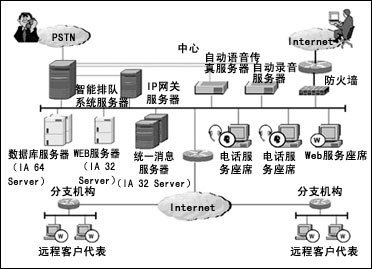 消息處理中心服務(wù)器協(xié)調(diào)客戶服務(wù)中心內(nèi)部各種服務(wù)資源的工作,使客戶來自電話網(wǎng)的訪問和來自互聯(lián)網(wǎng)的訪問能夠按照優(yōu)先級(jí)次序處理;