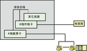 圖2 用通用模塊卡構(gòu)成8外線+3座席的CTI系統(tǒng)