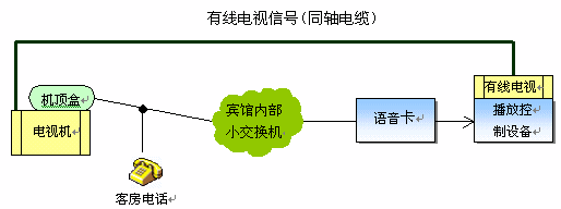 目前,越來越多的星級賓館開通了VOD點播系統(tǒng),從而開展收費節(jié)目服務。該系統(tǒng)可以利用原有的賓館有線電視網(wǎng)絡和客房電話線來實現(xiàn),最大限度地利用了原有的設備,節(jié)省了投資。其系統(tǒng)構(gòu)成如下圖所示: