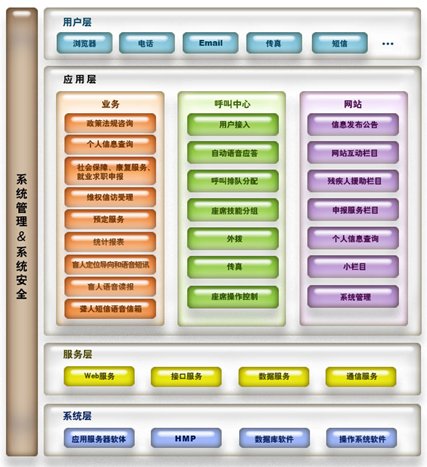 用戶層是呼叫系統(tǒng)與系統(tǒng)使用者之間的聯(lián)系層。工作人員可以通過瀏覽器進入系統(tǒng)的業(yè)務部分進行工作,處理相應事務;用戶可以通過電話打入系統(tǒng)的呼叫中心部分,獲得自動或人工服務,也可以通過Email、短信、傳真等方式與系統(tǒng)聯(lián)系;同時,系統(tǒng)可以進行電話外撥,聯(lián)系相關部門或進行主動服務。